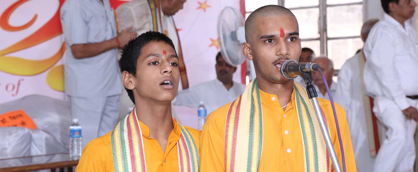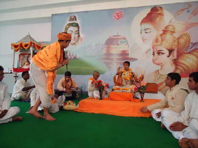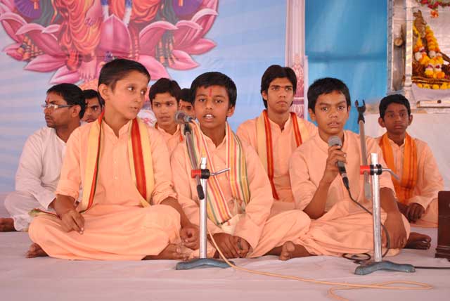 6. महाराजश्री के सत्संगों में गुरुकुल छात्रों द्वारा स्वर सहित स्वस्ति वाचन मंगलाचरण एवं सुमधुर भजनों की प्रस्तुति।